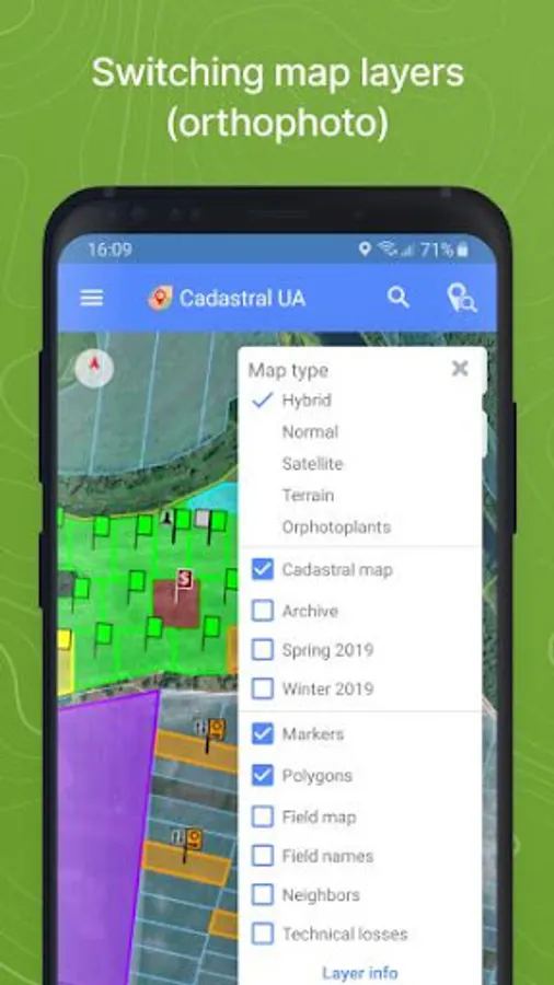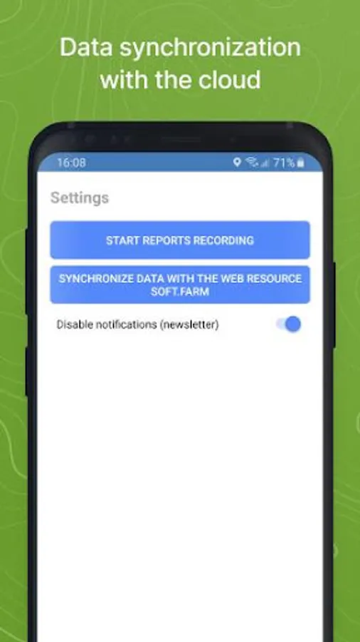 The application connects to the cloud service www.soft.farm, registered users receive additional functions for managing the land bank: