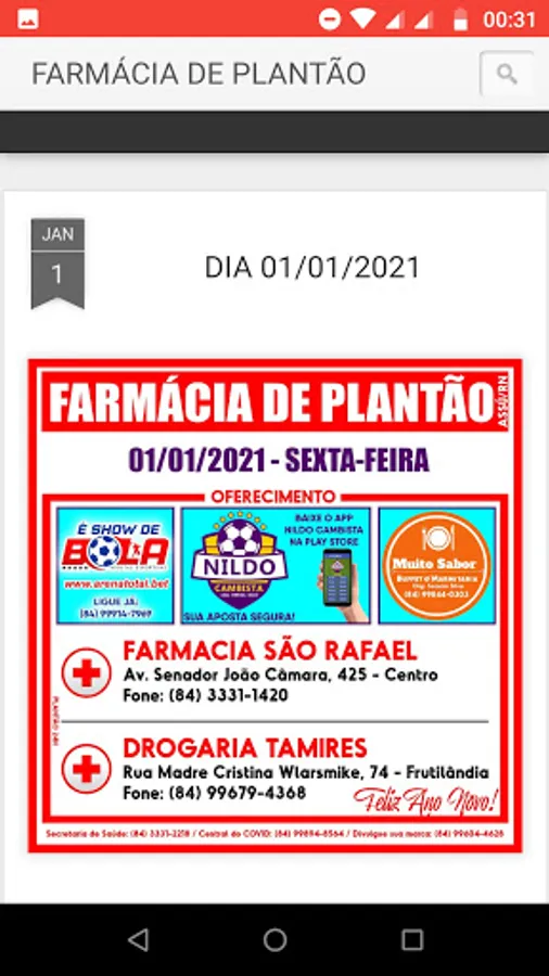 Data and information about the pharmacies on duty every day in Assú / RN.