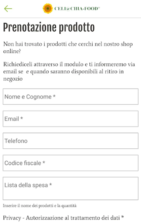 The Celi @ chia-Food food store app in Turin allows you with a few clicks to get advice and information, make reservations, orders and requests for gluten-free products and more: in our offer you will find products suitable for food for the major types of intolerances.