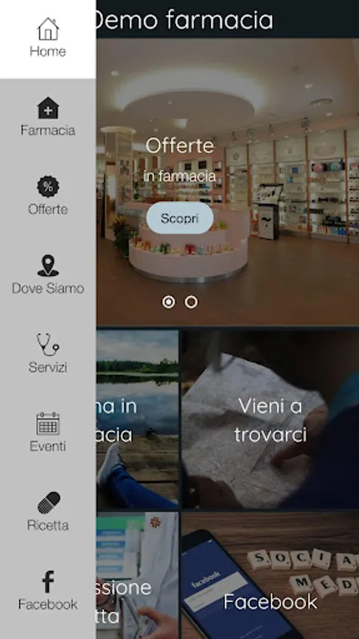 - Events at the pharmacy: integration with events published on the facebook page of the pharmacy;