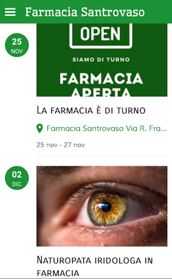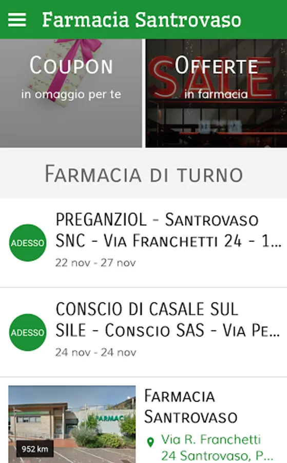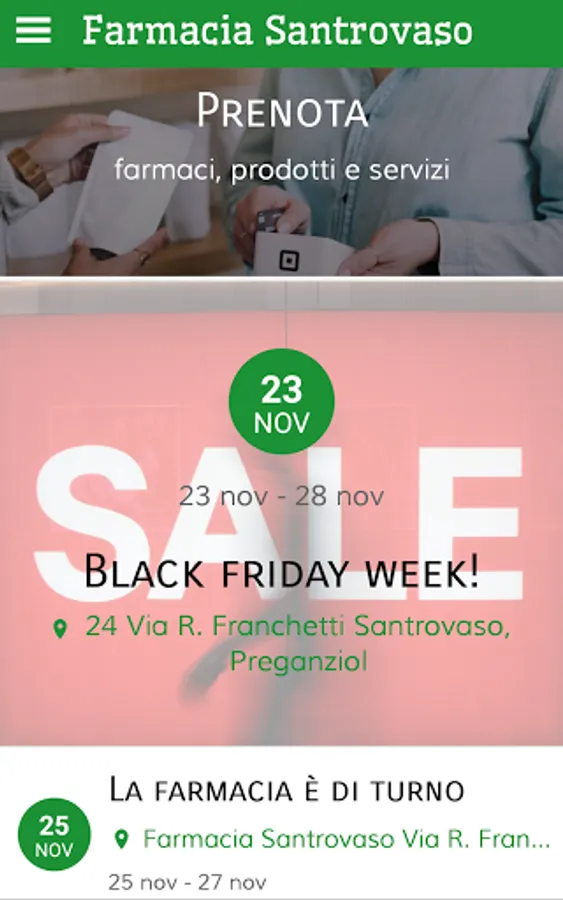 The App of the Santrovaso Pharmacy in Preganziol (TV) allows you to have your trusted pharmacists always at hand with advice, information, reservations, orders, requests for products and services in the pharmacy.