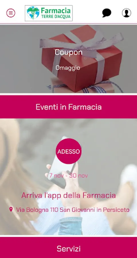 The App of the Terre D'Acqua Pharmacy in San Giovanni in Persiceto allows you to have your trusted pharmacist always at hand with advice, information, reservations, orders, requests for products and services in the pharmacy.