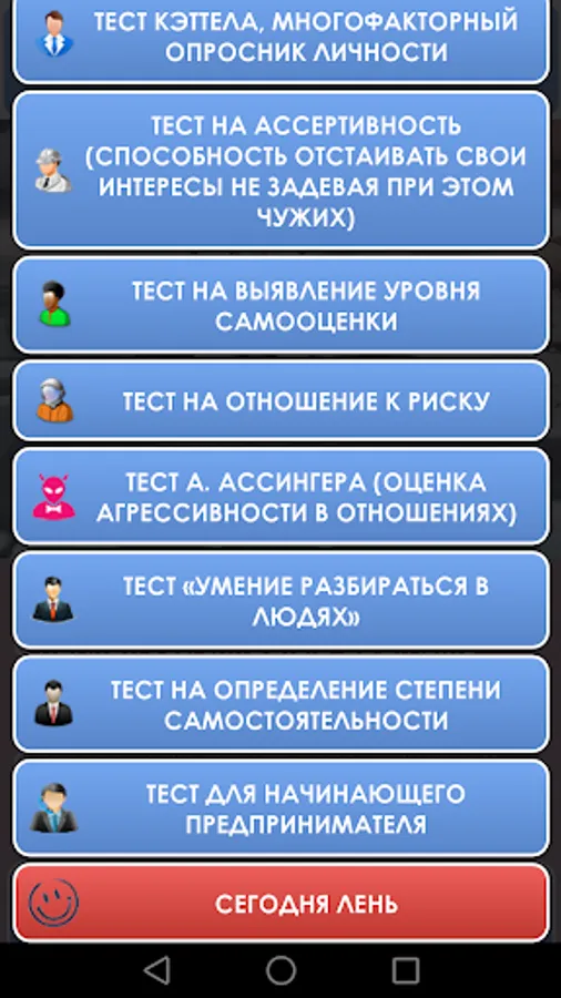 The appendix contains tests that make it possible to draw up a psychological portrait of a person with almost complete confidence, to determine his inclinations and habits. Tests contribute to the overall characteristics of the person, his personal and business qualities. Submitted tests will allow you to look at yourself from the outside, learn more about your strengths and weaknesses, understand the causes of problems in relationships with others.