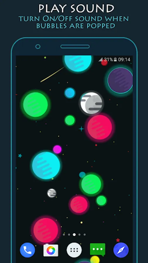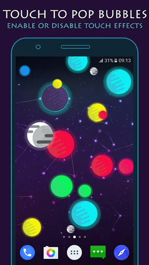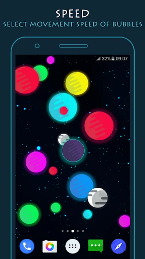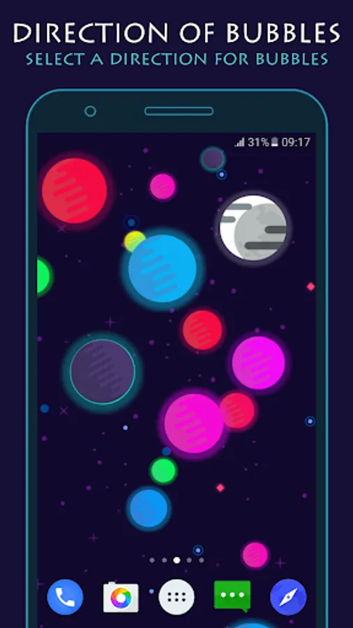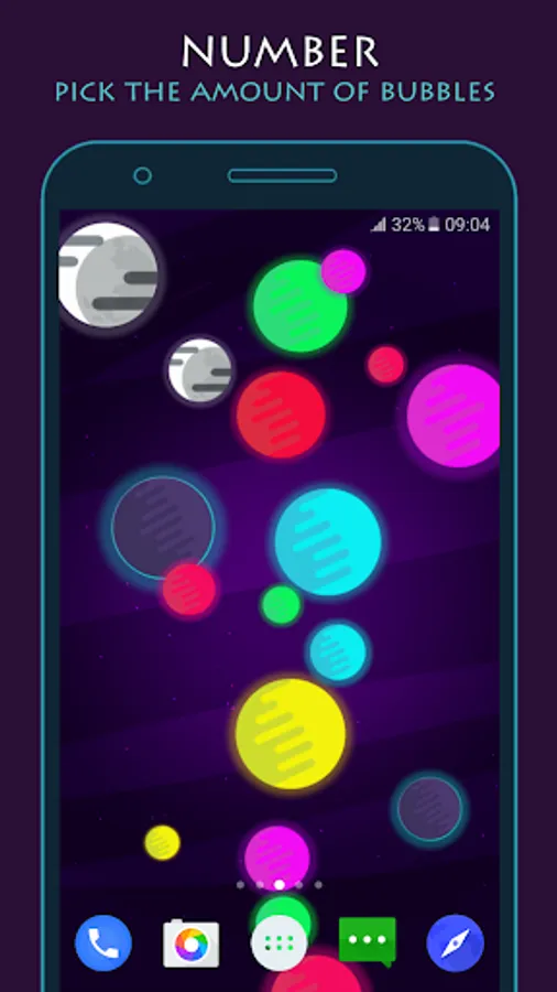 Galactic Bubble is a colored live wallpaper whith cool flying bubbles. Galactic Bubble is very customizable, you can set number of bubbles, speed, direction, change background, change color of bubbles, sound etc. Also you can play, pop as many bubbles you can whith a simple touch
