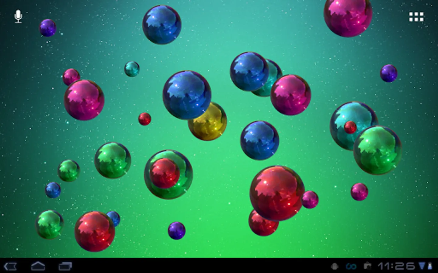 Space Bubbles is a great live wallpaper to have on your home screen because of the classy colored HD bubbles and awsome background themes. With Space Bubbles you can do almost everything, you can set number of bubbles, speed, direction, color of bubbles, change background etc. Also you can play, pop as many bubbles you can whith a simple touch.