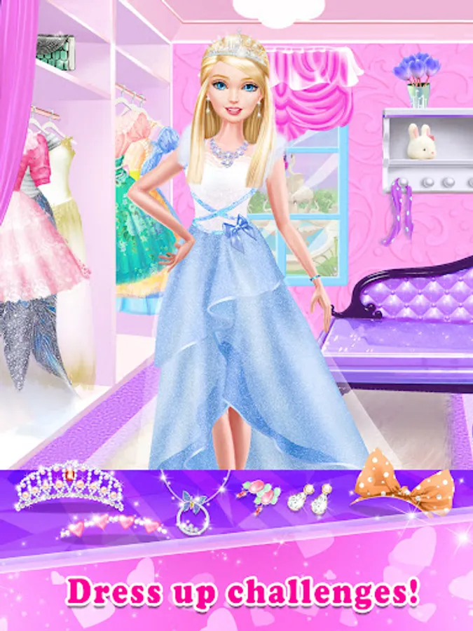 Wake up, put on your makeup and slide into a cute dress. It's time to open your own fashion spa! Dress up beautiful princesses one by one as they step into your spa for a complete makeover. They need a new dress, better hair and amazing makeup for the party. Can you turn these pretty girls into gorgeous princesses before the party begins?