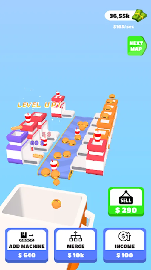 The gameplay is simple and addictive - just tap to merge food items and sit back to watch as your creations come to life. With each new production line you unlock, the possibilities for creating unique food combinations become even more endless.