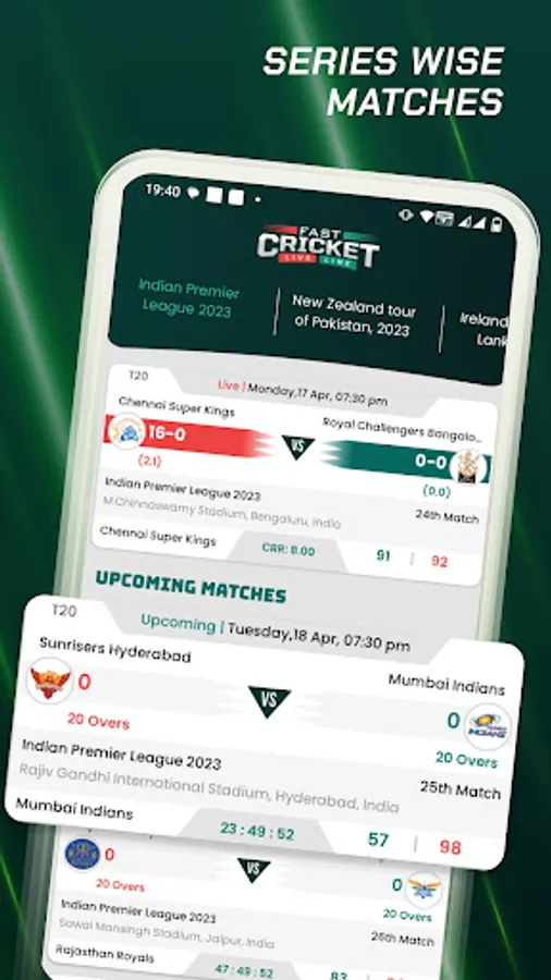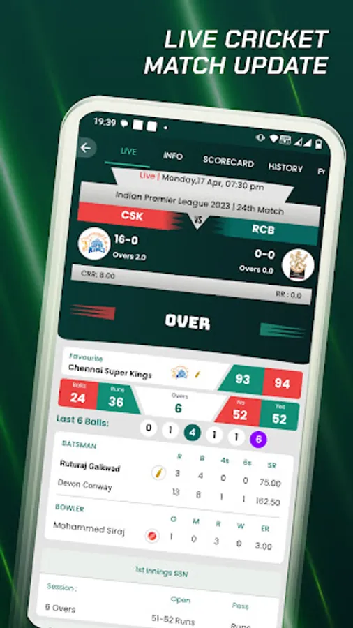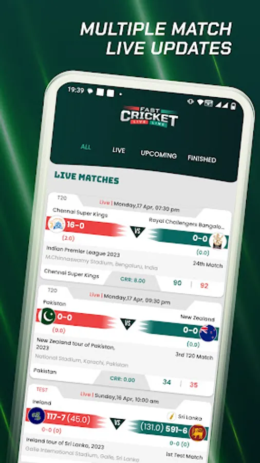 Fast Cricket Live Line provides ball by ball live cricket score ๐, Commentary, live score board, lambi, Session & latest cricket news. All match from start to end on your mobile without affecting your productivity. Check cricket live line score, Stay updated with the latest cricket news ๐ฐ, and update to know exciting facts about cricket.