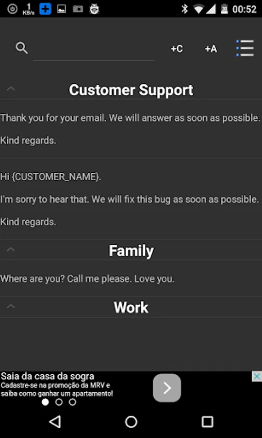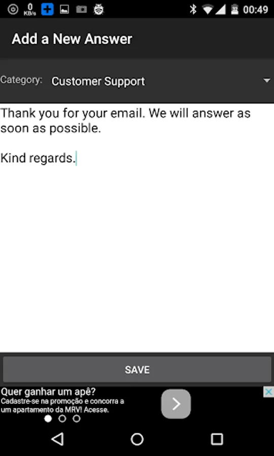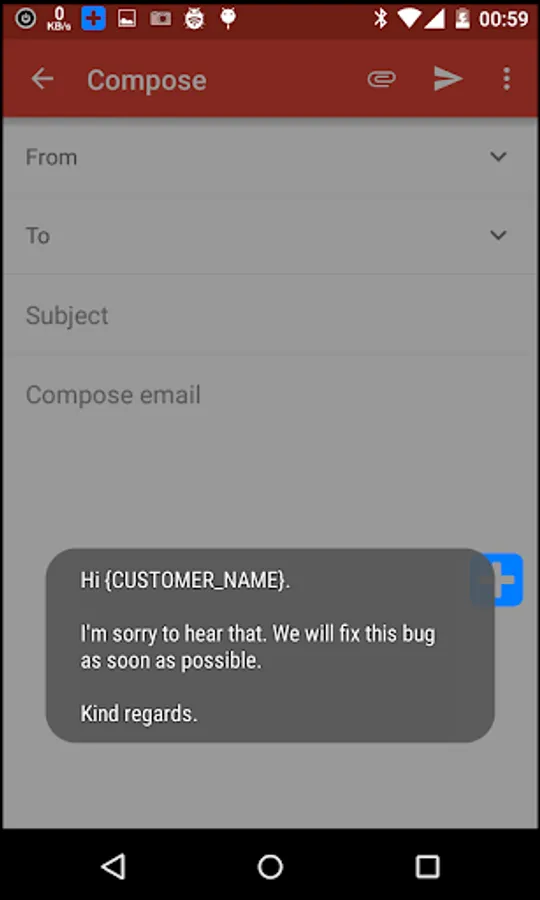 My main goal when creating this app was to create the best, easiest and fastest way possible to use on my day to day customer support, that I need to give to the users of my apps. I have more than 70 apps published on Google Play, and I receive more than 50 emails daily. I'm an individual developer, and besides my apps, I have my 9 to 5 job.