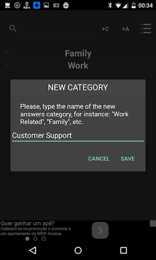 This app creates a button that is always visible, no matter what app you are using at the moment. When you click it, you can choose one of the answers you always send, and clicking on it will copy the answer to your clipboard.
