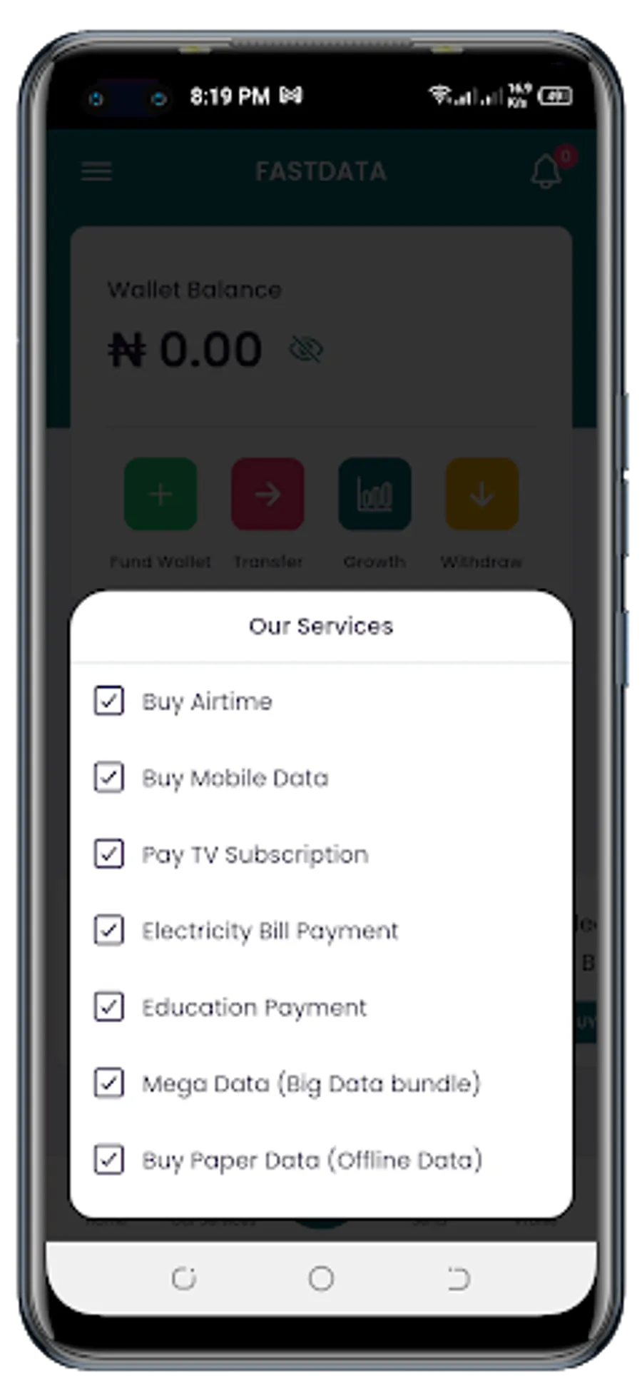 We offer instant recharge of Airtime, Data bundle, CableTV (DStv, GOtv & Startimes), Electricity Bill Payment, Education pins and more.