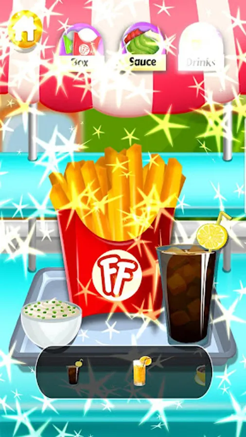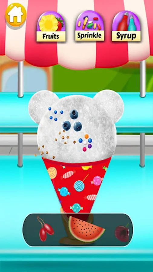 Best yummy rainbow colors and shapes for snow cone. Best crispy French fries, beautiful Cotton candy in star, heart, bear and other shapes and colors, hot dog with yummy sausages and mustard sauce, mayo sauce that make it delicious. Make them all in one game.