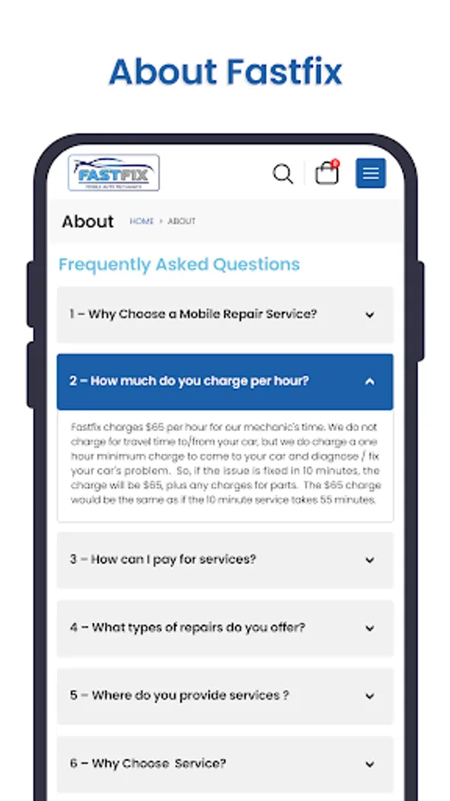 We also offer online appointments and payment, fleet maintenance programs, Car key programming, Pre-purchase car inspections, Car audio installs and repairs...and much, much more. Download our app today and help make your life, and your car's life better with Fastfix.