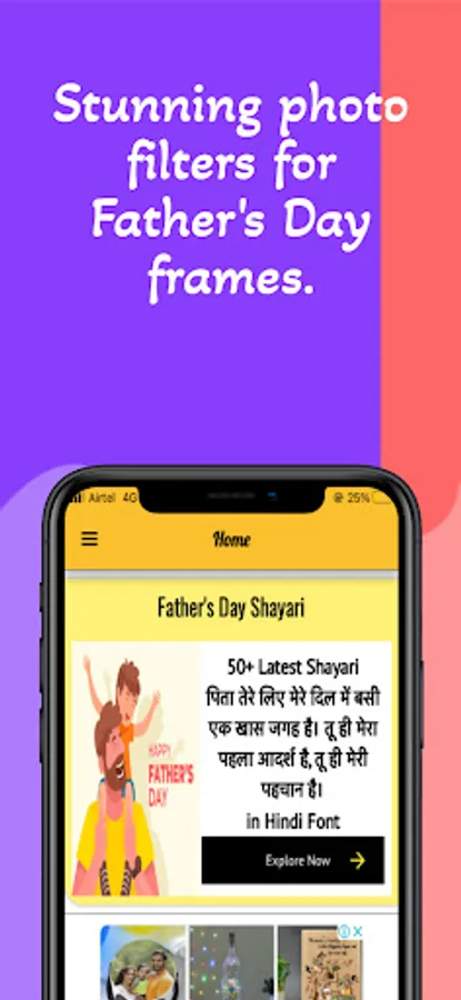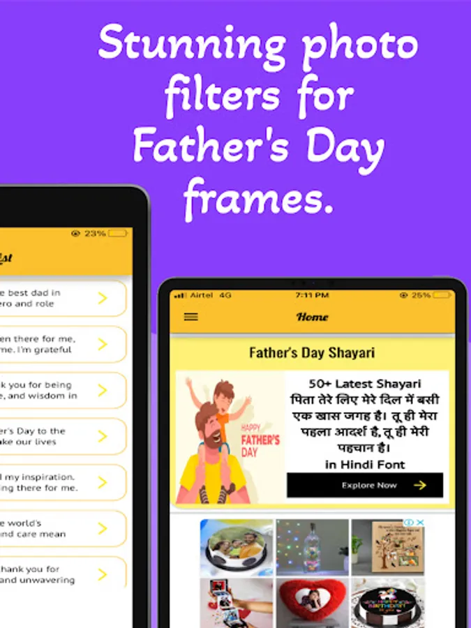 Our updated version includes a variety of new filters and effects for the Father's Day photo frames. Transform your favorite moments into artistic masterpieces with vintage, black and white, or vibrant filters. Add special effects like bokeh or overlays to create captivating visuals that capture the essence of your relationship with your dad.