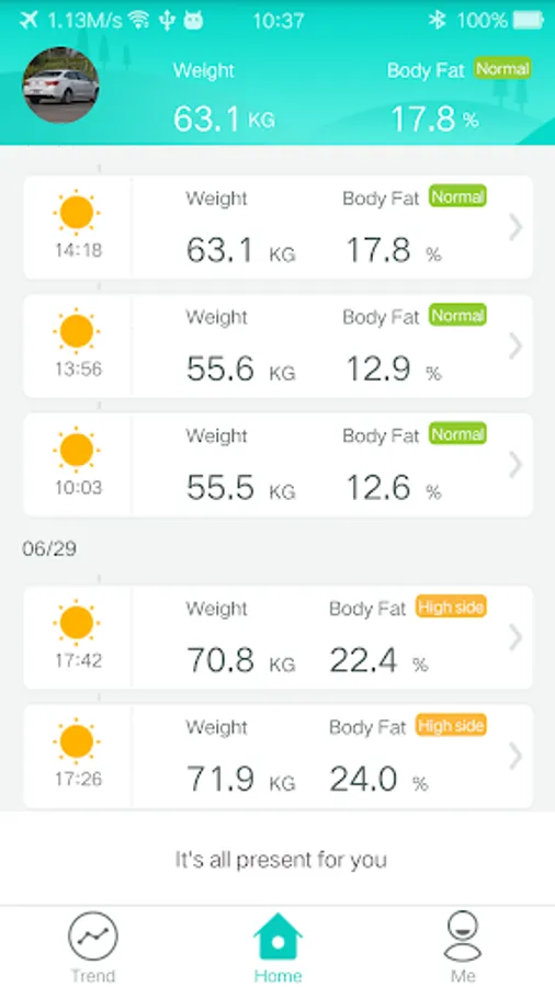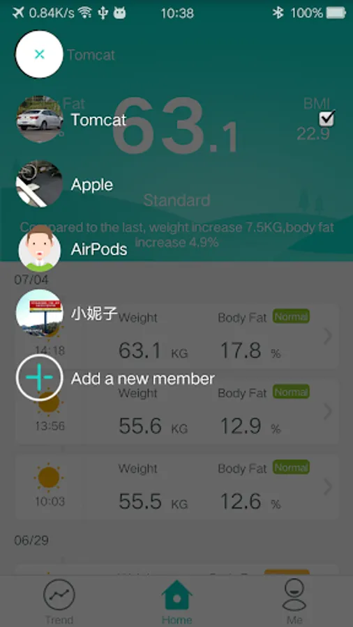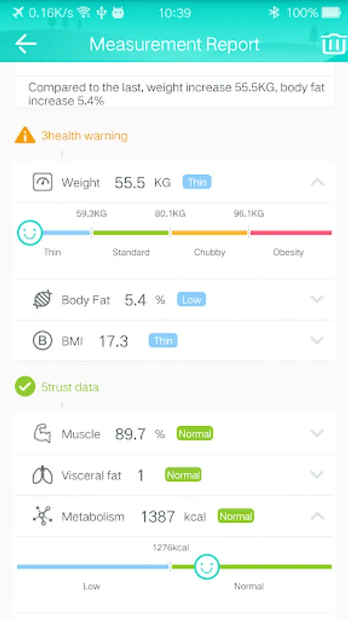 This is a smart health monitoring app based on information such as human body weight, impedance smart scale based on wifi measurement, based on information such as age, gender, height and other information to calculate human body fat, muscle, water and other information
