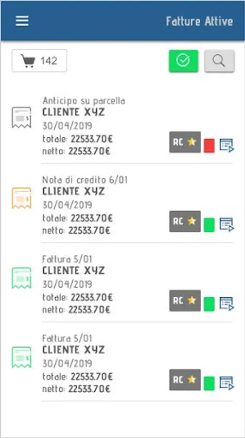 You can view the invoices generated and sent, imported and sent by our hubs and those received. For each document it is possible to check the results, download the invoice pdf, assign personalized work statuses, keep the credit under control with the display of the sending and receiving reports.