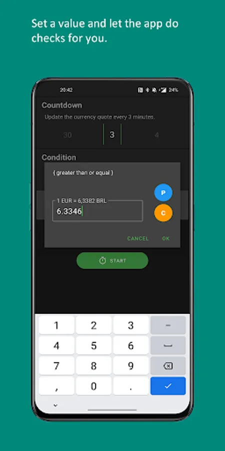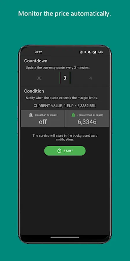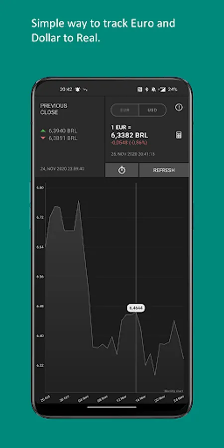 Simple and easy way to check the price of the Euro and Dollar to Real. The system has a real-time monitoring tool. Add a minimum or maximum amount and receive notifications when the price is reached.