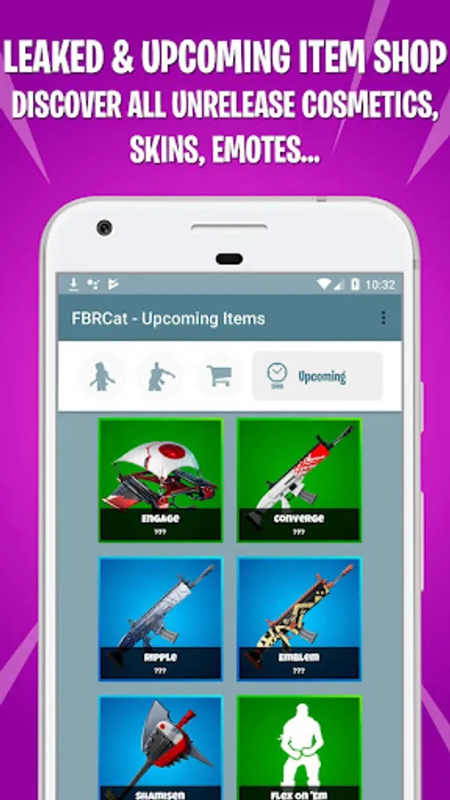 Please note that "FBRCat – Battle Royale Skins, Emotes & Daily Shop” is not associated with Epic Games or any of its affiliated parties. This is an unofficial fan-made app.