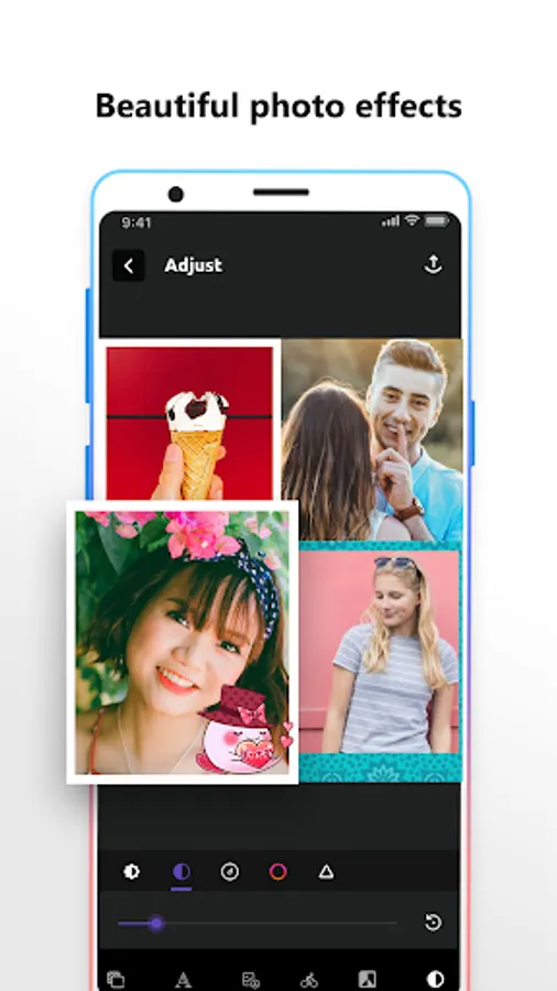 With photo collage maker you can decorate your pictures by applying fantastic photo editor effects.