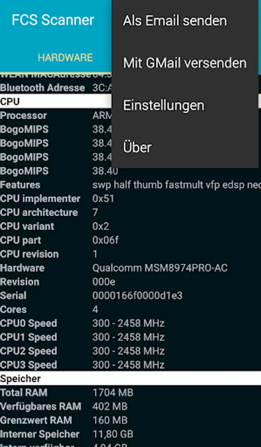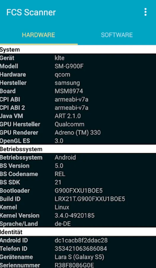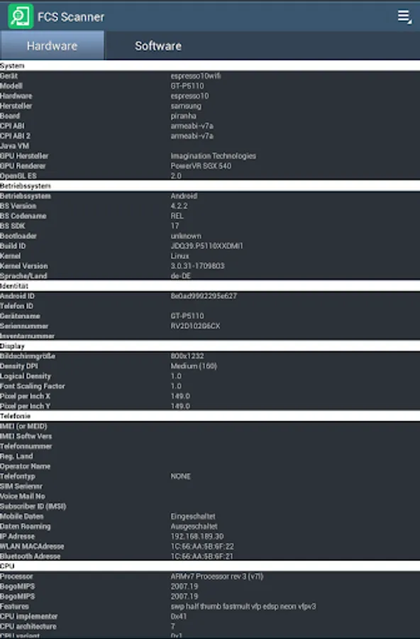 This app (available in German and English) scans your smartphone or tablet and supplies you with detailed hardware and software information: