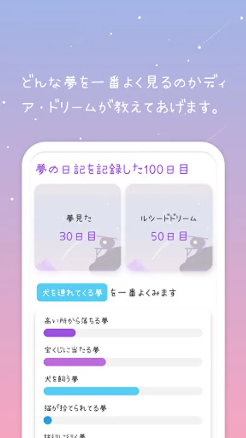 DearDream will tell you what kind of dream you have the most.