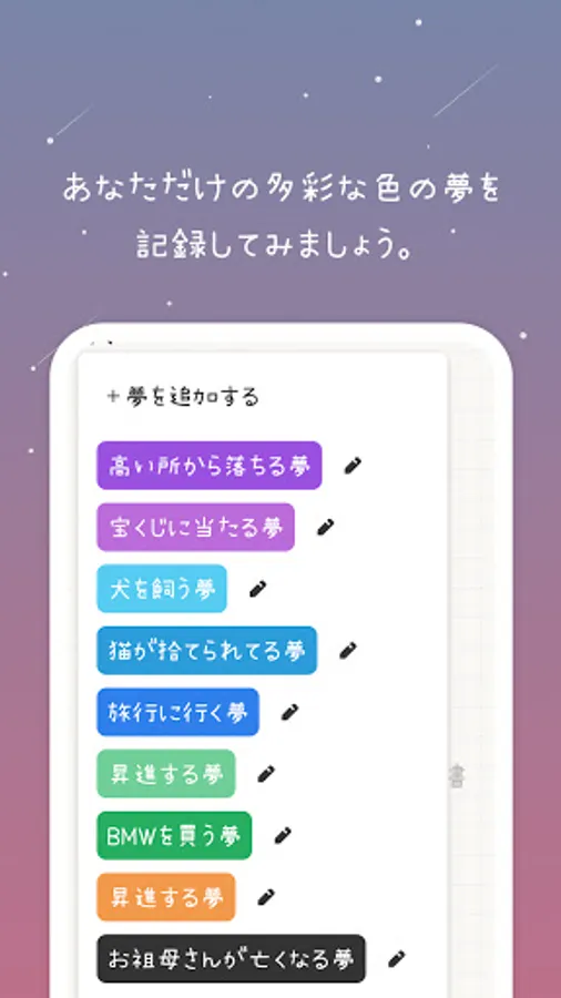 Various types of dreams can be set. How about deciding the color by dream category?