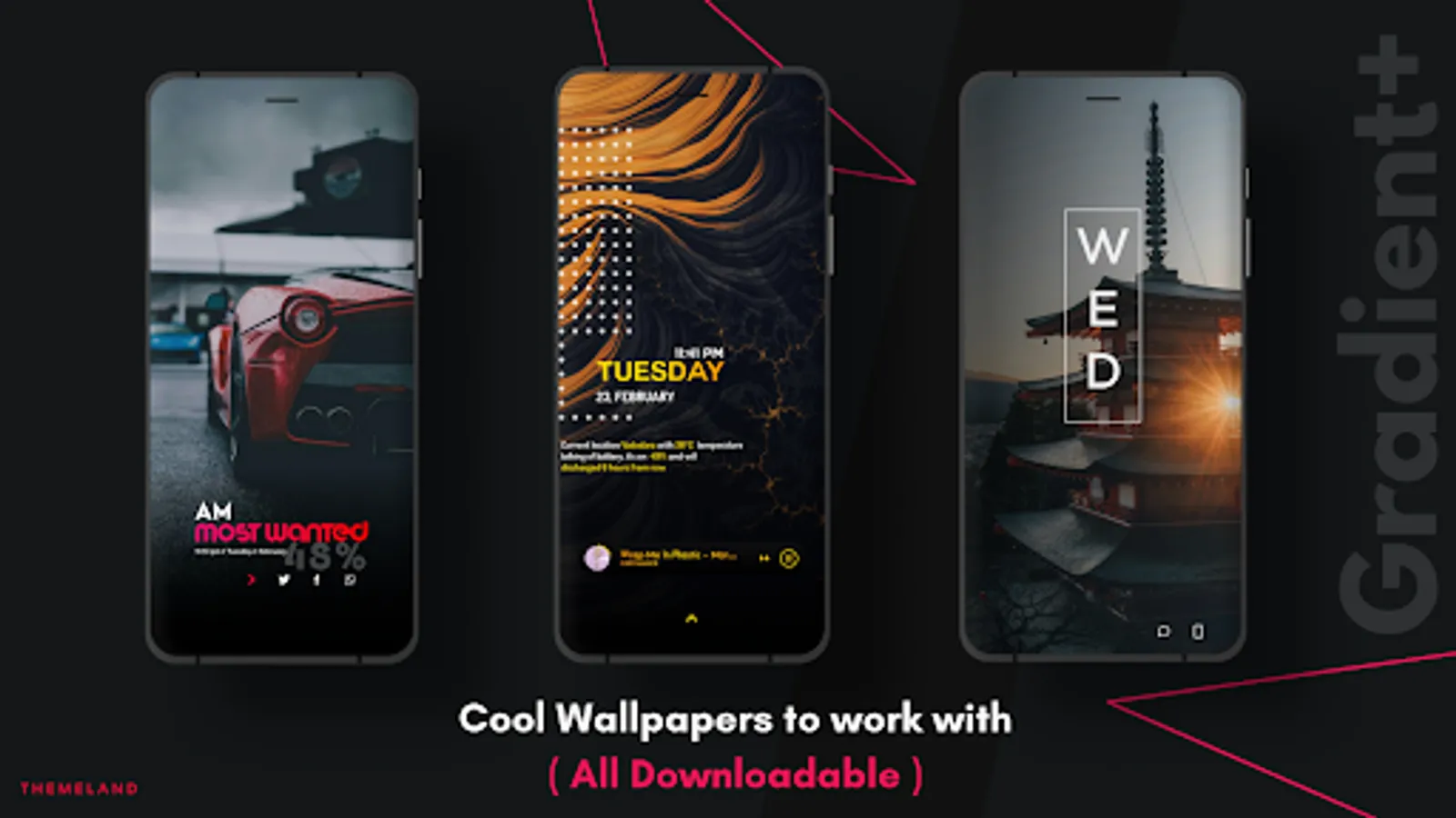 Widgets of Gradient Plus are made with special fonts with perfect gradients and are designed in a way that it can match any wallpaper. Along with it, we have added social media shortcuts, docks, app drawers and music players.. all with multiple colour combinations, so that you can make more and more attractive screens.