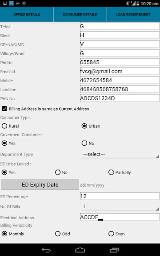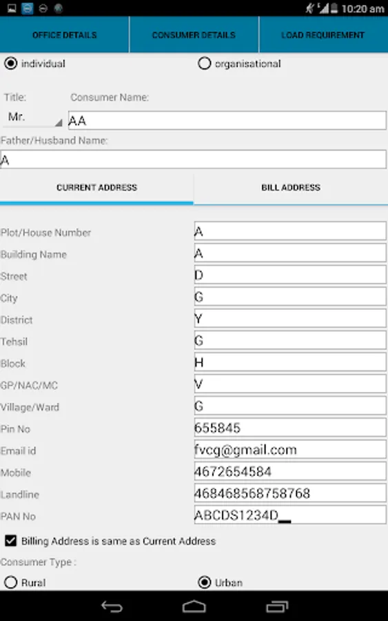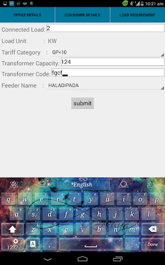 Application is used get the details of the new consumer for Electricity connection.