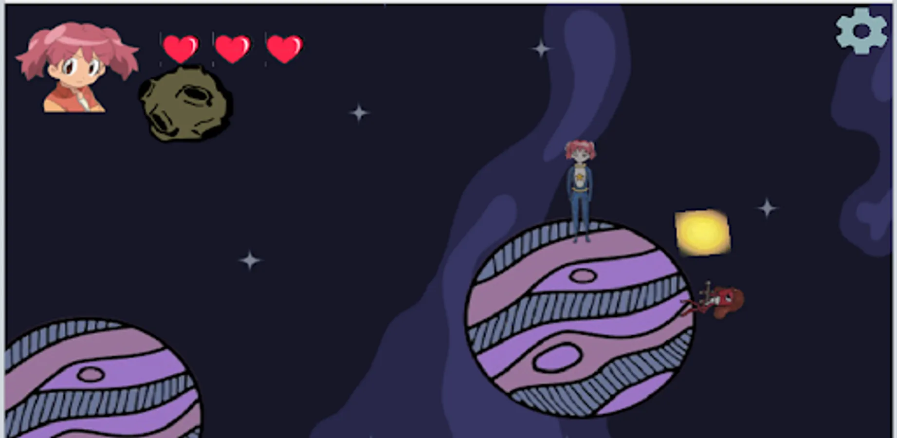 Help Natsumi jump between planets to find Sergeant Keroro!