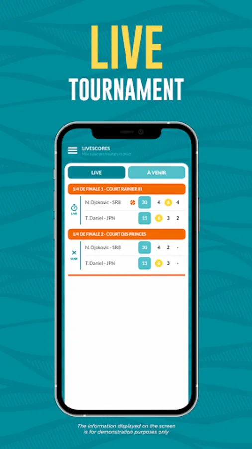 The application gives the possibility to follow in live the Monegasque week through live-scoring matchs, results updated in real time or the player’s stats.