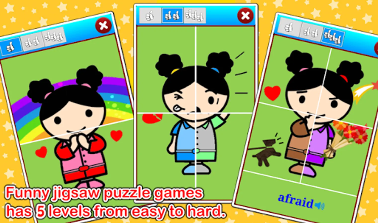 ★ Funny jigsaw puzzle games has 5 levels from easy to hard.