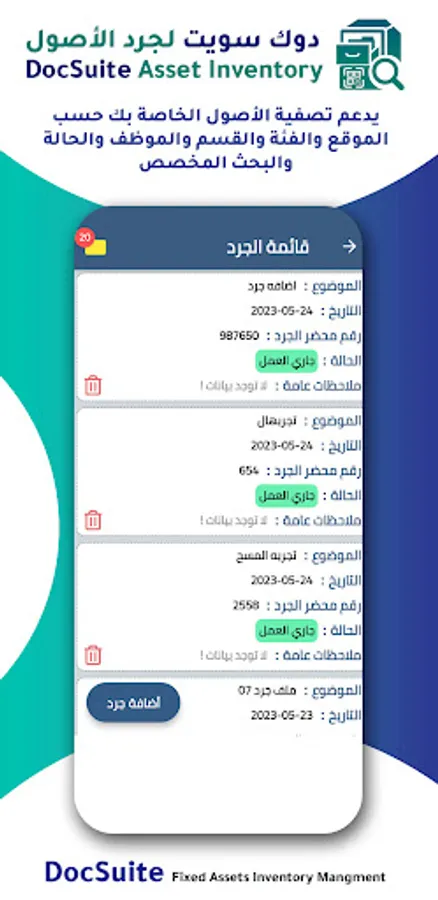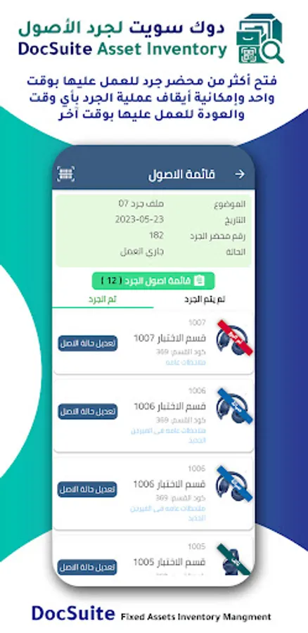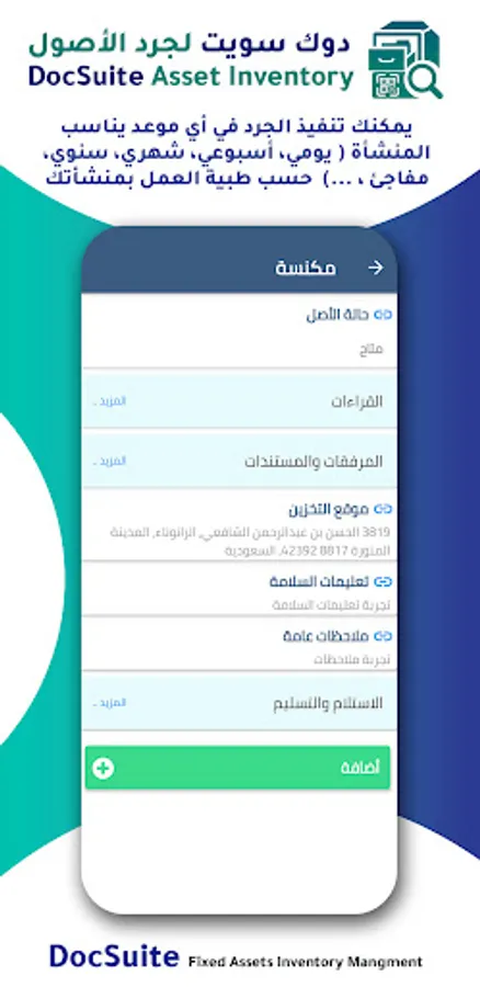 You will get to know your assets using the fixed asset management and inventory program where you can add assets and store them electronically, by obtaining all asset information such as make, model, serial number, financial details and many other information related to your assets, which is a way to help you classify your assets and know their locations and status moment by moment with monitoring And a review of its preventive maintenance, it also includes the best and latest method for asset inventory via mobile devices via the Fixed Assets Inventory DocSuite application Integrated electronic control for asset inventory management Inventory according to target asset inventory records.