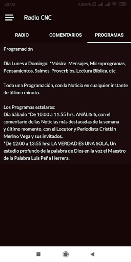 Director Responsible for Radio CNC Radio-Noticias is Cristián Merino Vega, Headquartered in the City of Santiago de Chile. Our Objective is to Inform, Educate and Evangelize the Healthy Doctrine of the Gospel of Jesus Christ to the whole world.