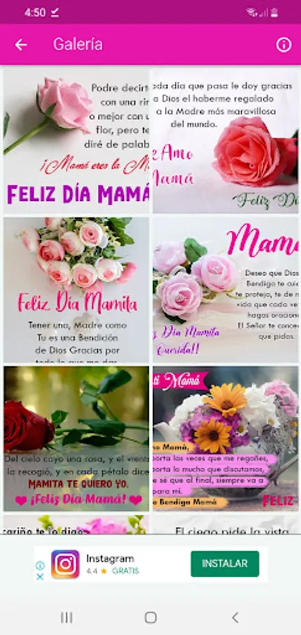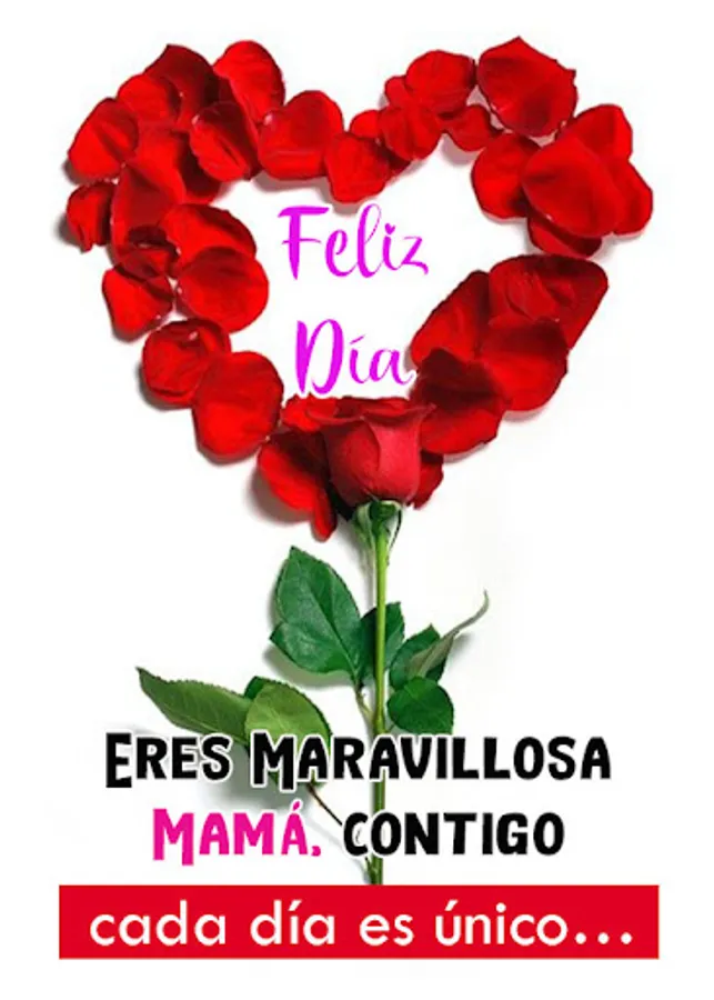 In this application you will find the best images, postcards and beautiful cards with mother's day phrases to say: mommy you are the best or happy day mom, thank you mom or congratulations mom. Because there is only one mother and mother's love is forever, give her a special gift and send her a phrase of love from a son or daughter and tell her how much you adore her.