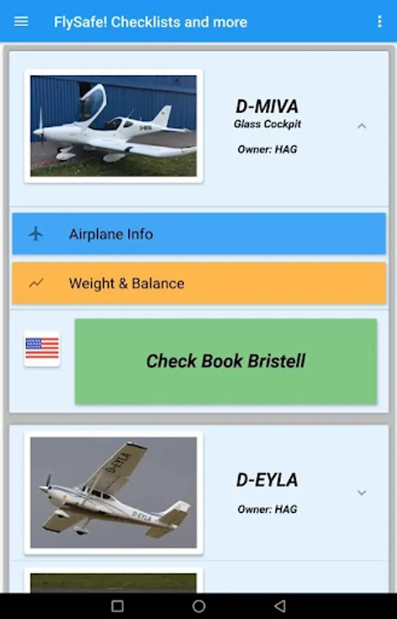 Yo can create your own airplanes and checklists on our website and download them into the App to use them offline during your flights