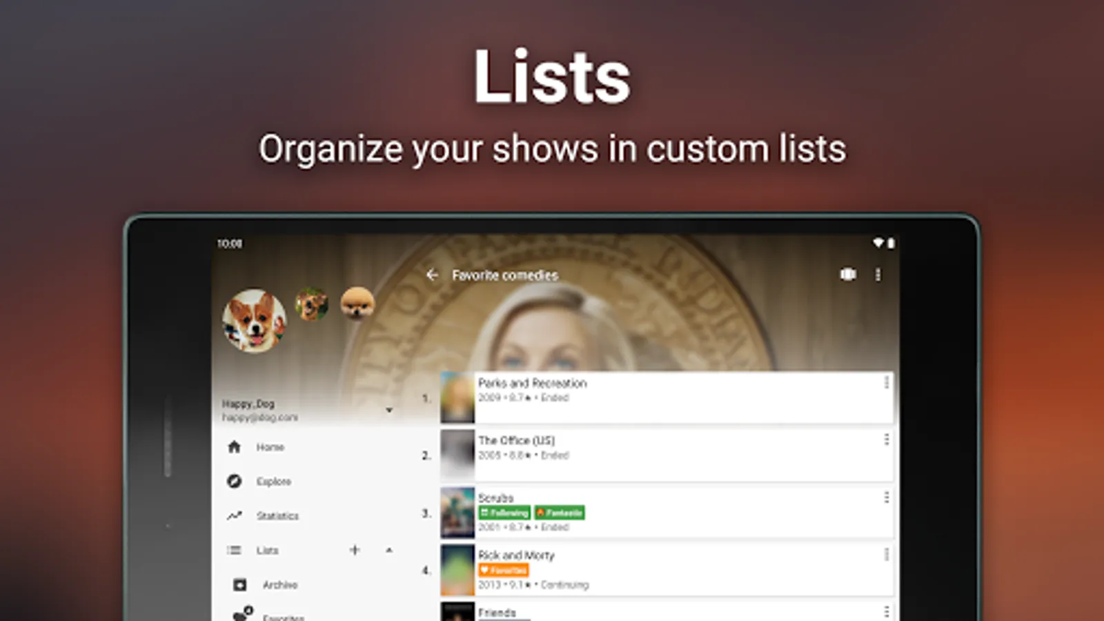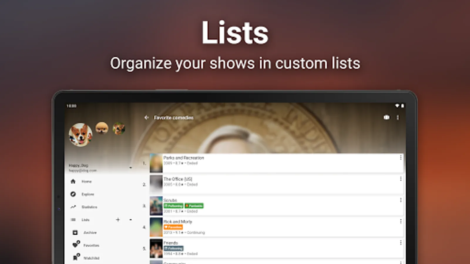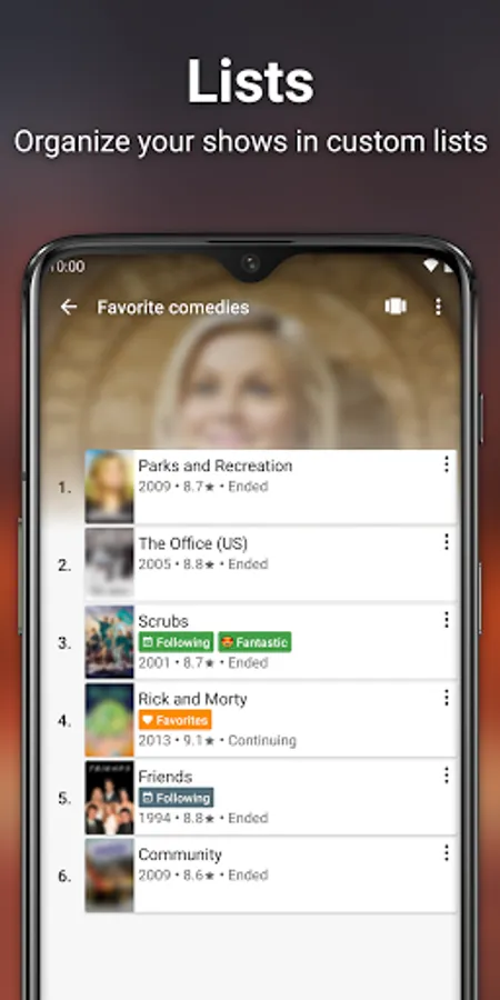 π Lists: Create lists about the TV shows you like the most, your completed one, in an easy and intuitive way.