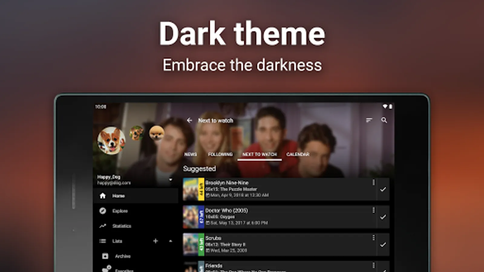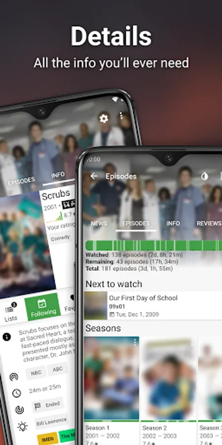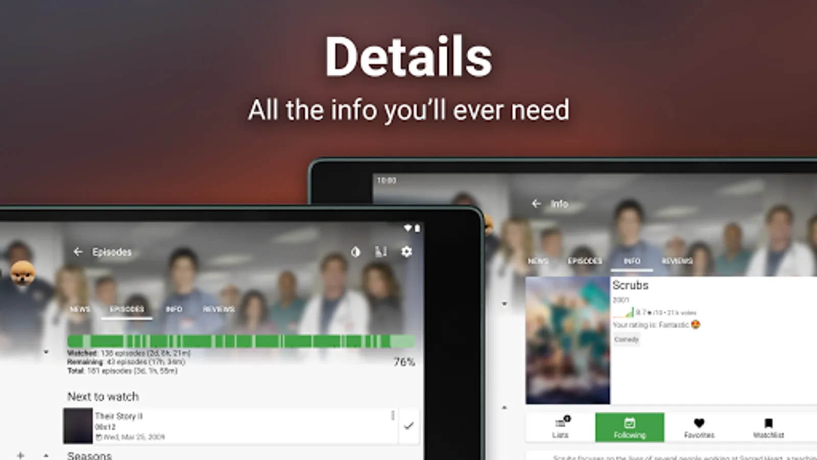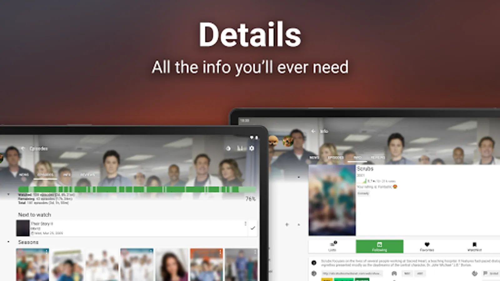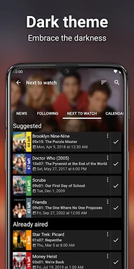 βοΈ Check: With one touch, you can keep an eye on new episodes, extras and additional information. You can also mark episodes as seen or new, so you'll never lose your progress.