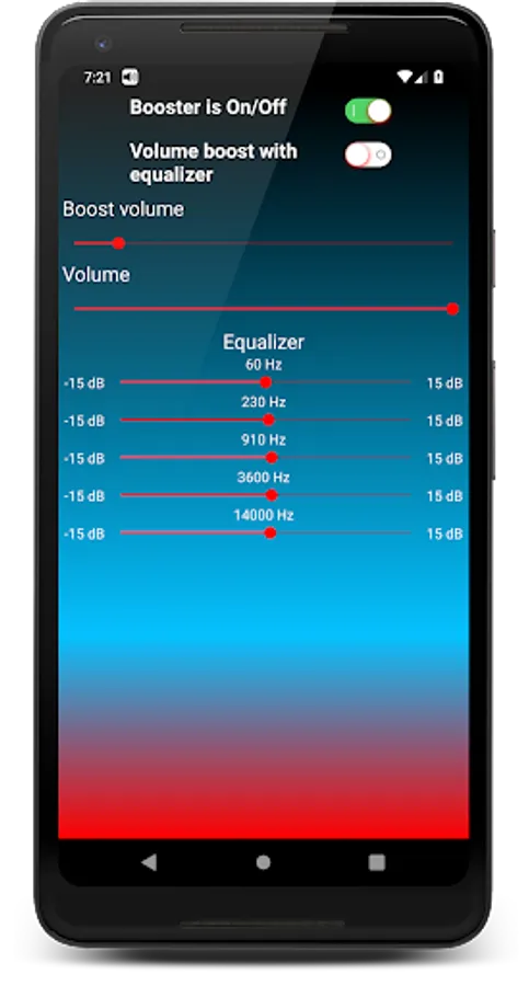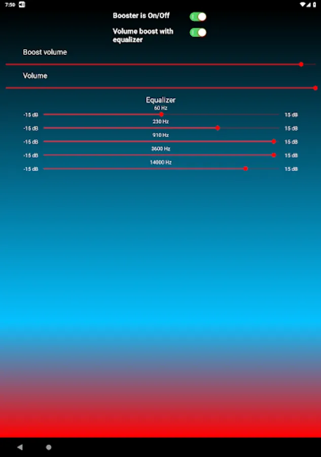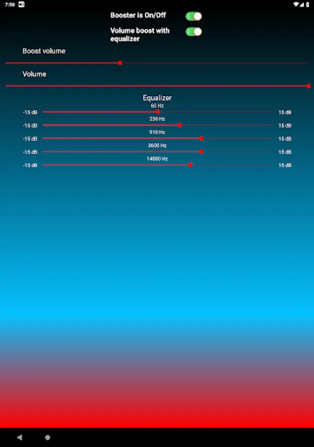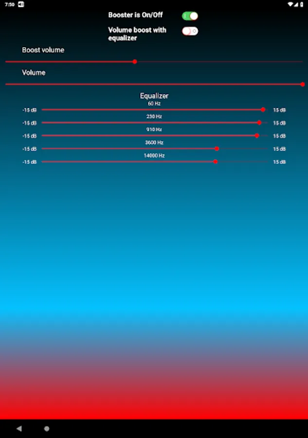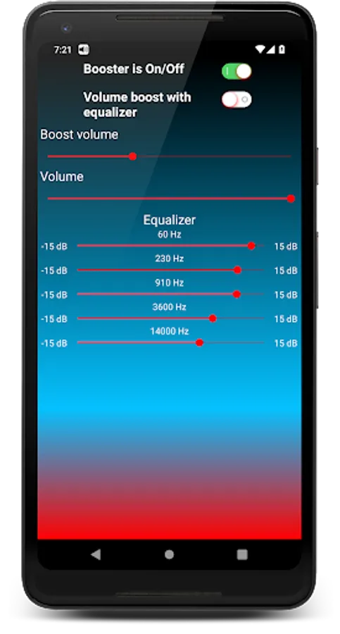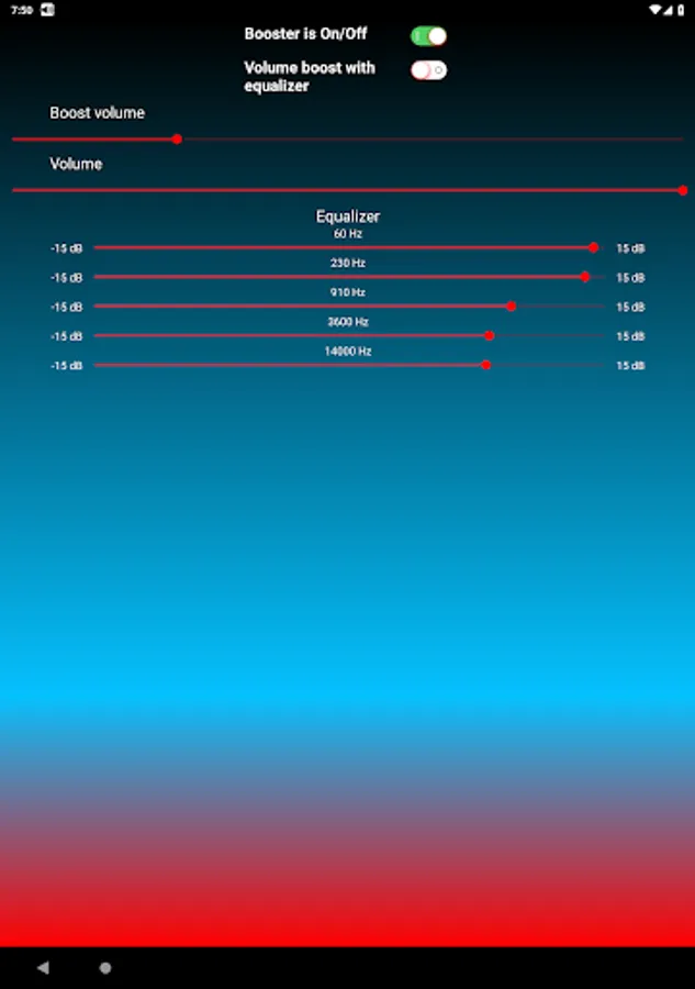 You can boost the sound in “Loud Volume Booster For Headphones with Equalizer” using equalizer boost. When you move the slider of boost, then the tracks of equalizer moves automatically.