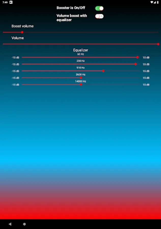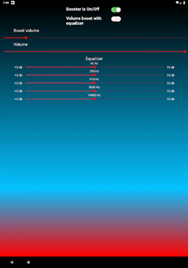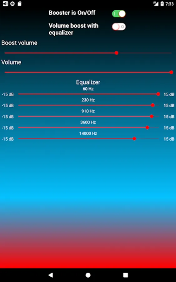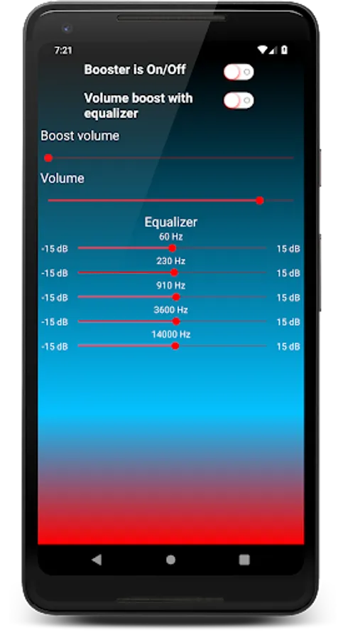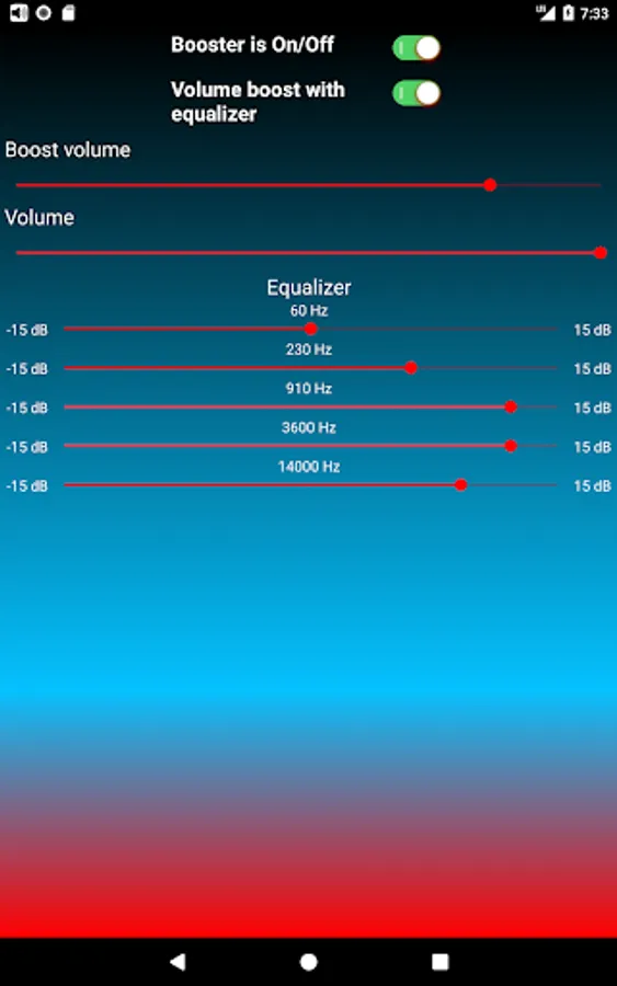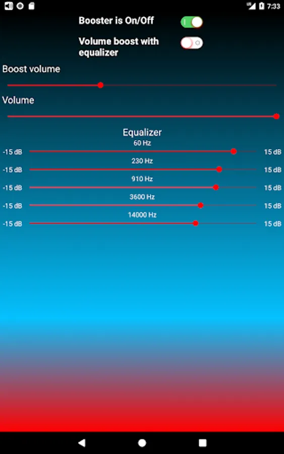 You can boost the sound in “Loud Volume Booster For Headphones with Equalizer” using equalizer boost. When you move the slider of boost, then the tracks of equalizer moves automatically.