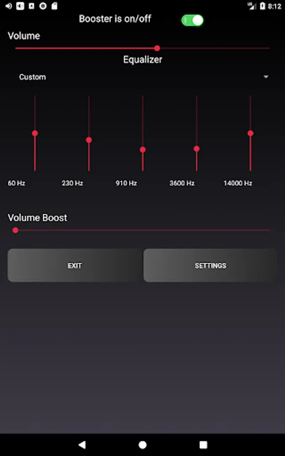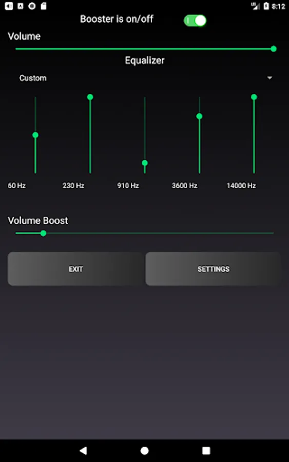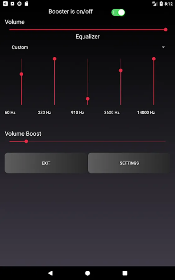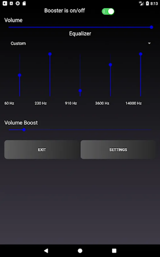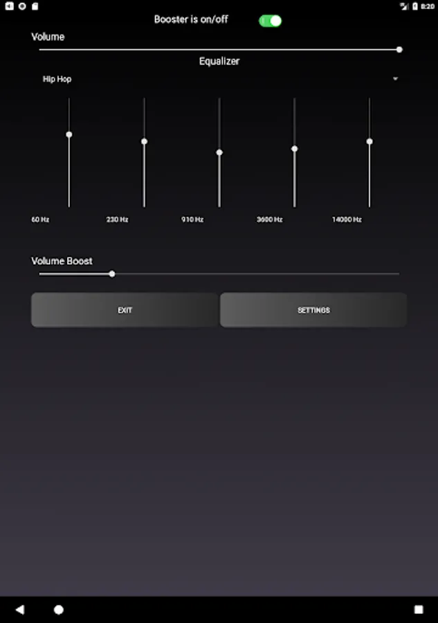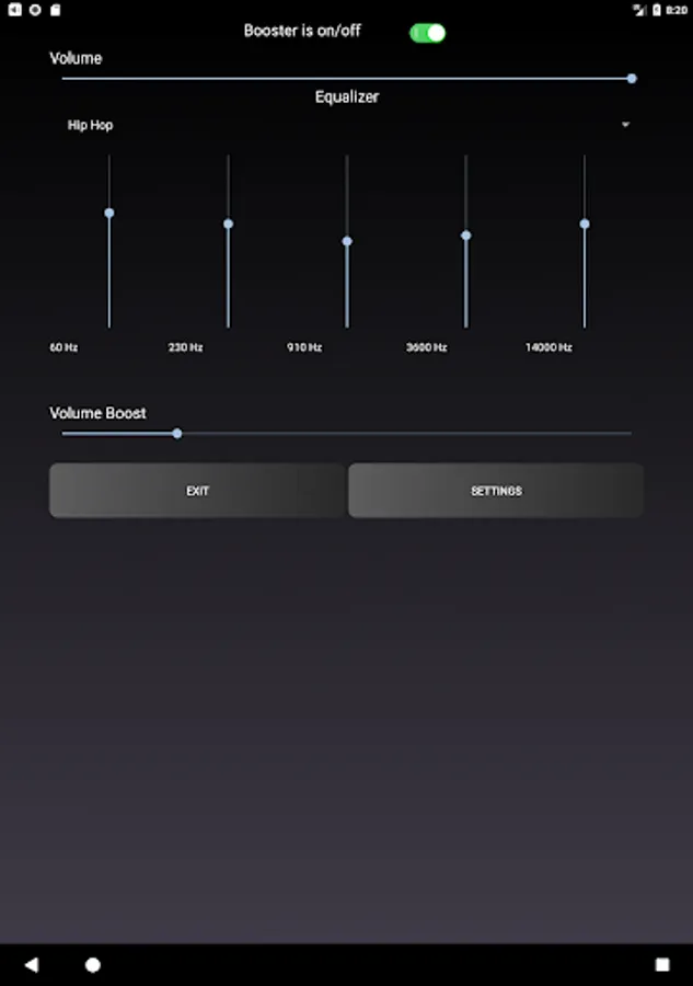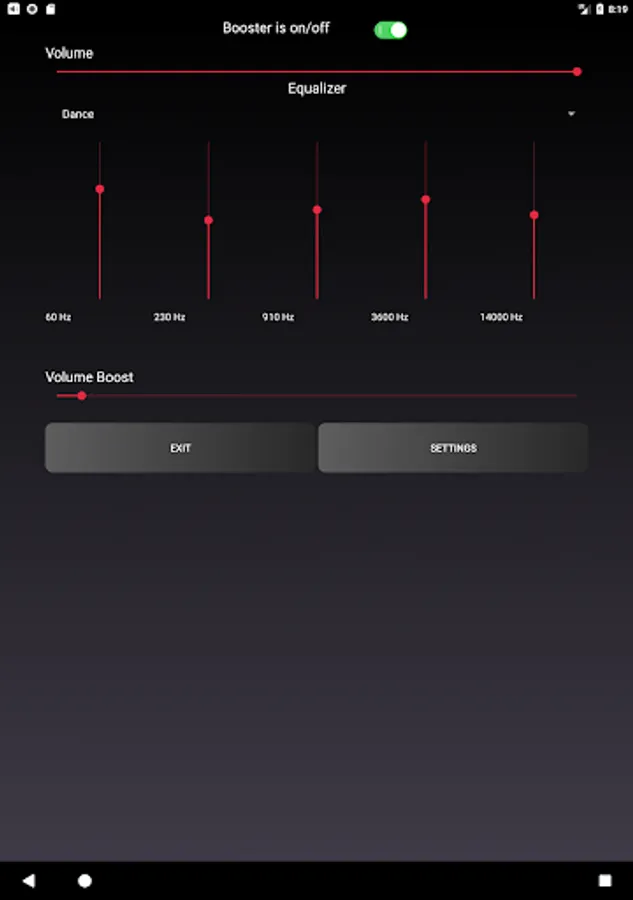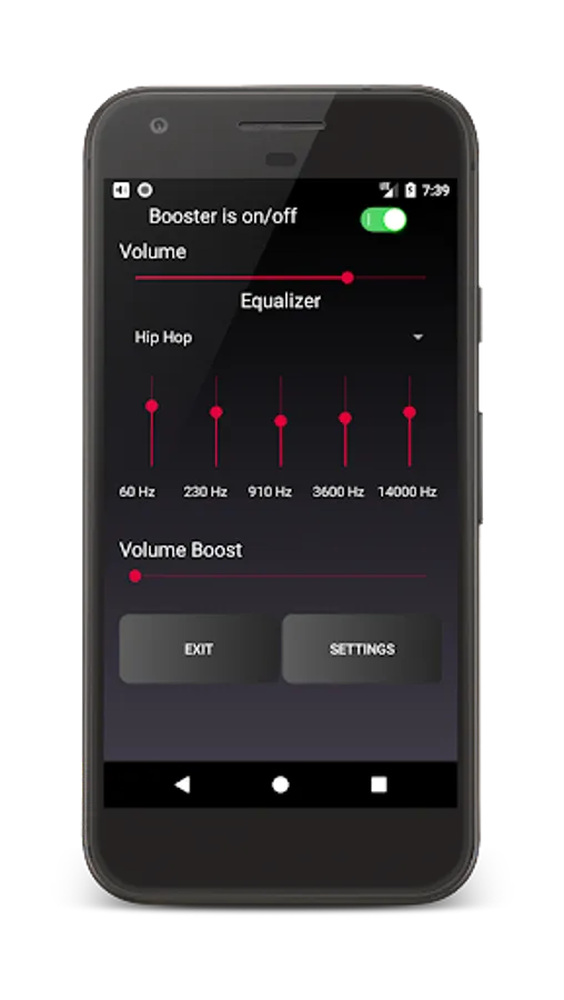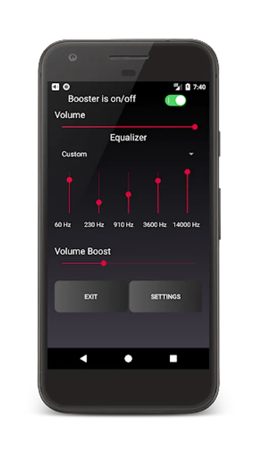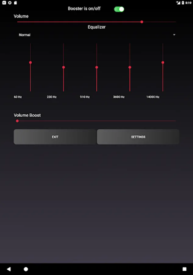 Speaker Booster with Equalizer is easy to use. There you will find volume boost. When you turn the Booster on, you can change the degree of loudness.