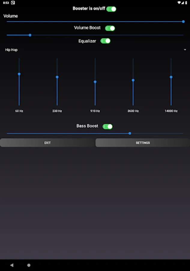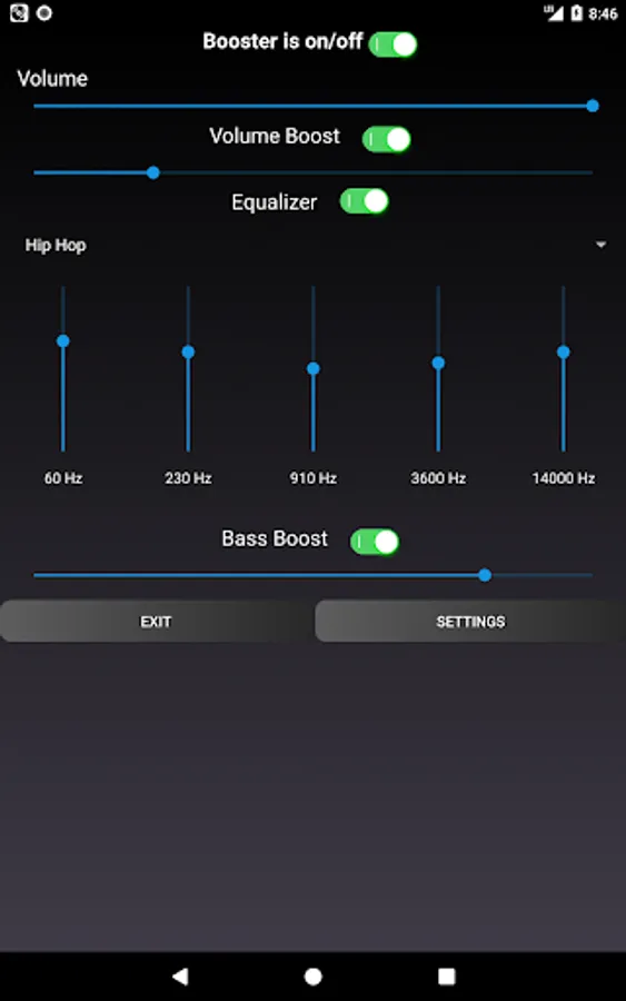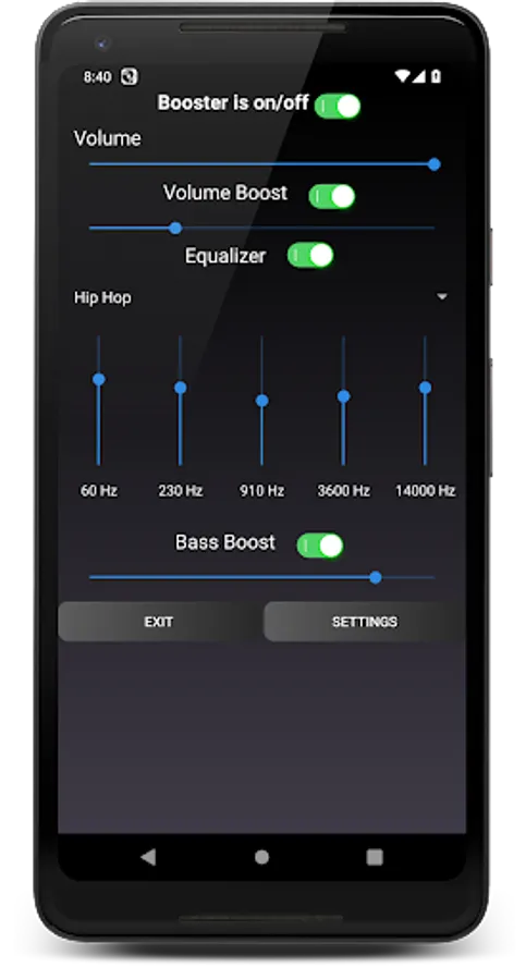 Bass booster in the volume enhancer “Volume Booster, Equalizer and Bass Boost for Music” helps you to increase the volume of bass in music with bass, in rap music, hip-hop music, trance music, dance music, club music.