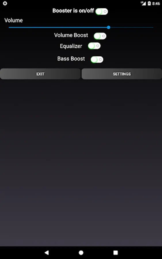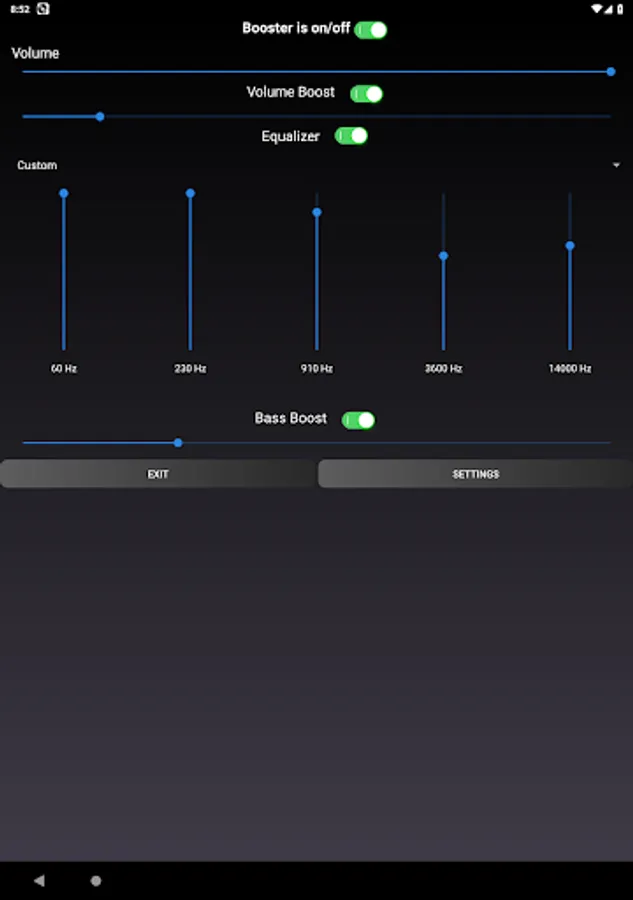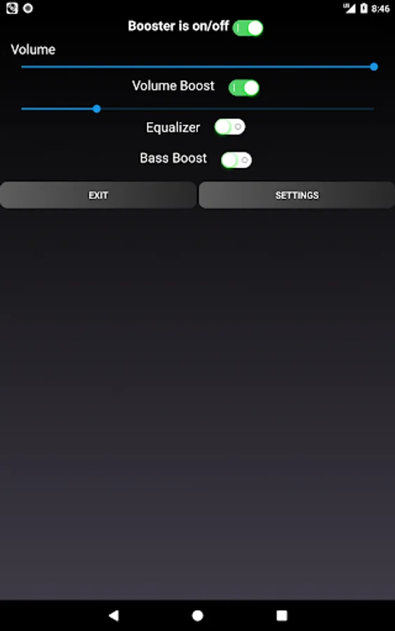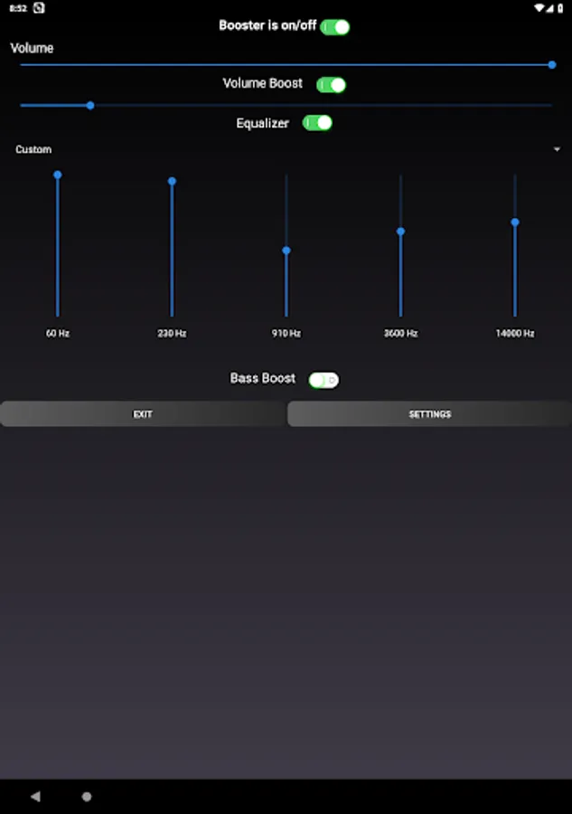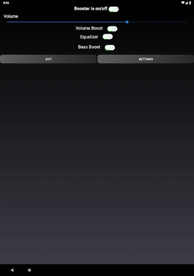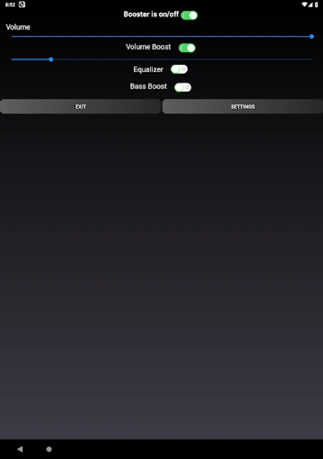 If you click on a button Volume Boost, then you will activate the ability to boost the volume higher than the maximum standard volume of you Android device.