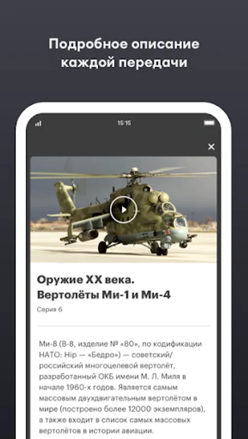 The channel “Oruzhie” is the first TV channel in Russia entirely devoted to the topic of weapons. All types of weapons, the history of weapons, weapons as part of world culture - all this is in the library of the channel, which has more than 1000 hours of domestic and foreign documentaries and programs.