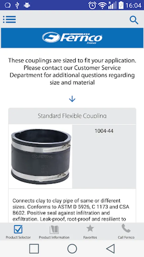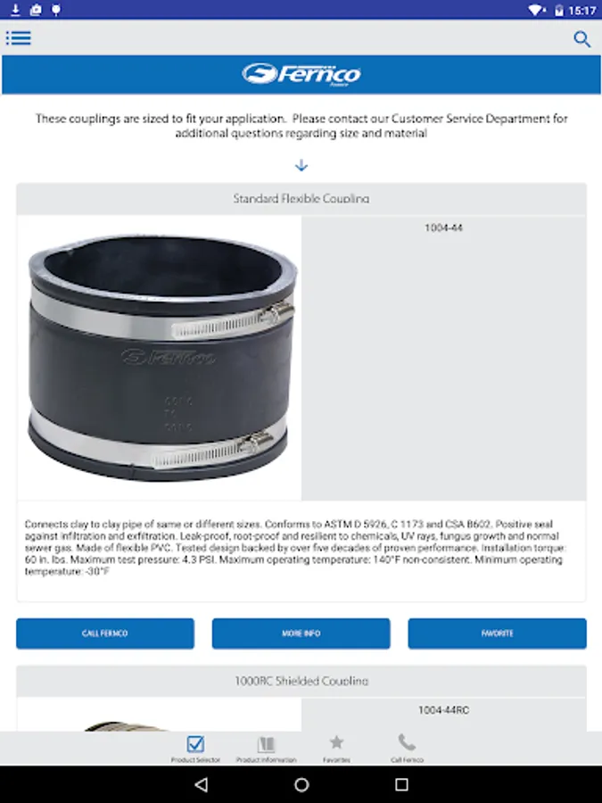 Fernco's app guides the user to simply find the Fernco coupling, lateral connection or pipe seal needed for their application. More information about all of Fernco products can easily be accessed from the app.