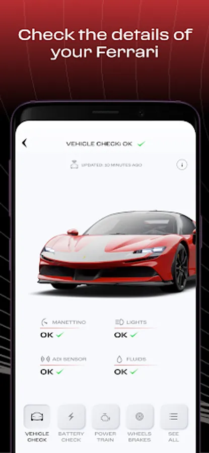 - the state of your Ferrari’s Manettino, lights, sensors and fluid level,