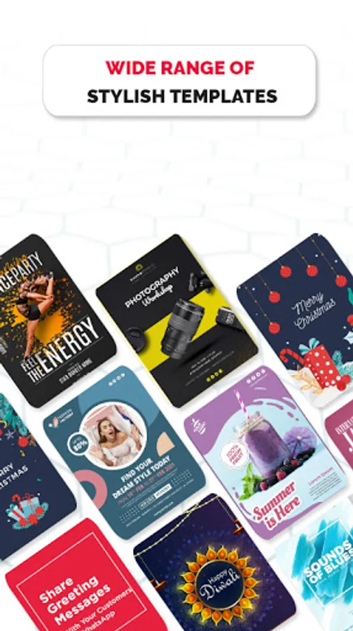 Get creative flyer maker app for social media marketing at your fingertips. Our app is useful for making a festival poster for every business like Small/Large Industries, Gift/Bookstore, Grocery shop, Sports, Courier Service, Construction, Education, Online store, Caffe, Restaurant, Software Company, Import/Export, Tours & Travels, Jewellery Shop, Hardware, School, Colleges, Hospitals, business festival photo maker online.Create promotional Festival posters, Festival advertisement, Festival offer announcements, Festival cover photos on the go with amazing backgrounds, texture, effects, fonts, stickers and get the attention you want. Poster Maker, Flyer Designer, Ads Page Designer, Banner Maker is an app specifically for designing posters, banner, flyer and cards easily.