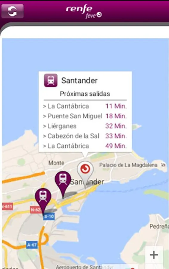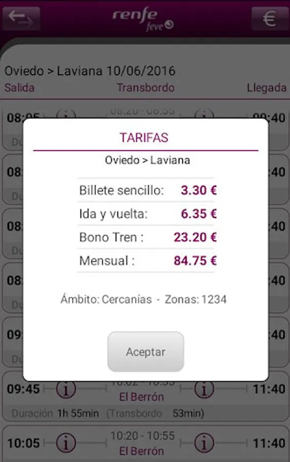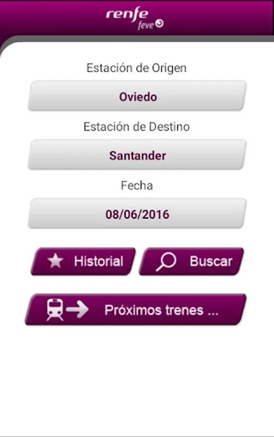 This application allows to see the RENFE train schedules LVEF in Galicia, Asturias, Cantabria, Basque Country, Castile and León (Burgos, Palencia and León) and Murcia. Also lets get the price of the tickets for the visit.