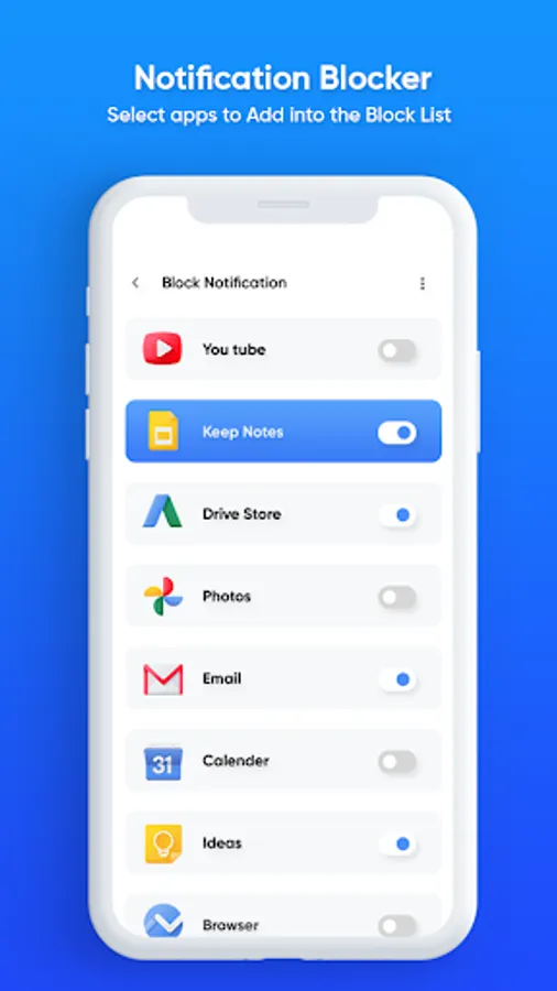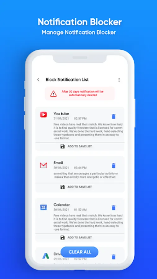 Notification Blocker & Cleaner helps you to block all notifications which are not important and manage them.