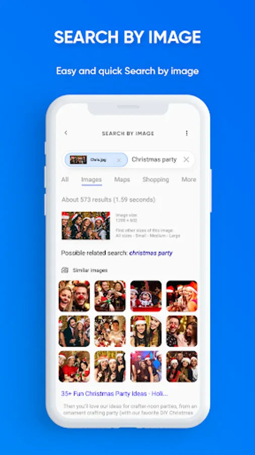 Search by Image: Image Search - Smart Search tool is used to search images, information, news, etc... The app allows you to pick images from phone gallery or capture photo from camera and search it.