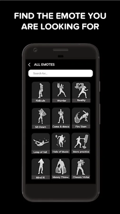 At your disposal you will find the search engine. By entering the name of your favorite battle royal emote, it will search the list and show you the result.